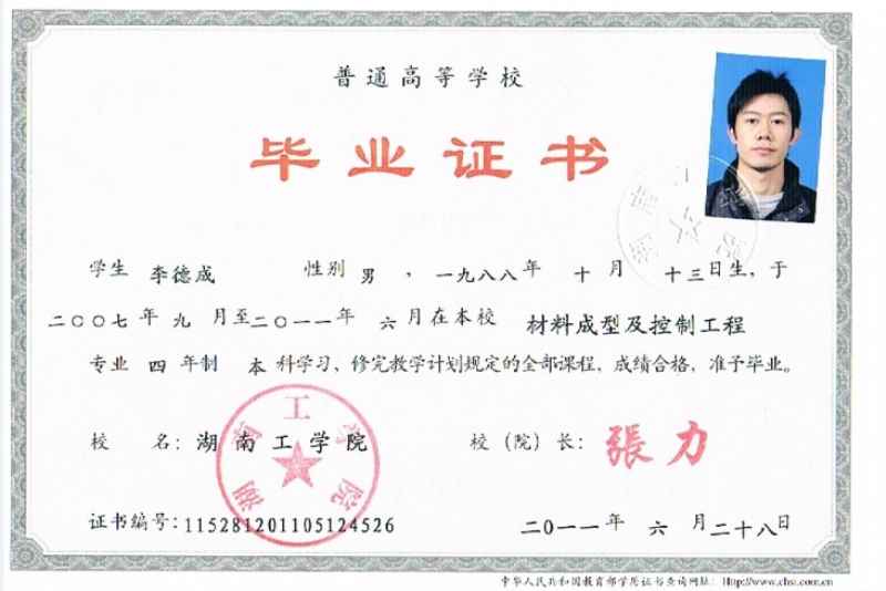 畢業學校: | 湖南工學院 | 所學專業: | 材料成型及控制工程 | |