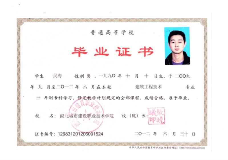 畢業學校: | 湖北城市建設職業技術學院 | 所學專業: | 建筑工程技術 | |