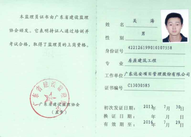 2012-02 至 2013-05 江西省贛建工程建設監理有限公司中山分公司 | 職 位:工程監理 | 工作性質:全職 職位描述: 整個工程從打樁開始到工程竣工驗收本人都已經經歷過,作為現場監理,我首先做好本職工作,在總監給予的任務下獨立展開監理活動,控制施工質量,進度,成本,全過程保證工程的各項安全工作。由于我本身在大學就是學的建筑工程(以建筑施工為主),為了使自己的技能更加有經驗,從事監理的活動過程中,也跟隨施工員一起進行施工方面的各項活動,測量放線,施工過程中質量控制,也都一一掌握,在施工現場我不懂就問,多看,多了解,豐富自己的現場工作經驗。 2013-05 至 今 廣東達安項目管理股份有限公司 | 職位名稱:現場監理員兼資料員 | 職 位:工程監理 | 工作性質:全職 職位描述: 接受總監理工程師和專業監理工程師的指令進行監理作業,協調配合各施工單位、業主方之間的工作。將監理工作的“三控制二管理一協調”(成本控制、進度控制、質量控制、合同管理、信息管理、工作協調)落實到位,服務于業主,提高工程項目建設質量。 |