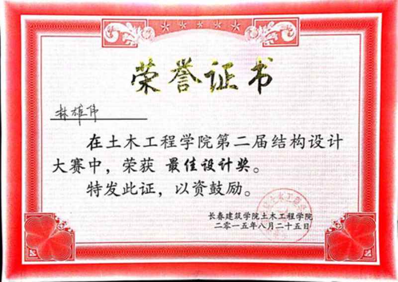 福州捷安建筑工程有限公司(施工員助理) 協助施工員測量管理監督等,理論結合實際提高自身能力明確學習方向和目標。 延吉百利建筑有限公司(施工員助理) 資料整理協助測量、管理監督、寫施工日志等,提高交流溝通能力,學習施工基本技能,提高綜合能力。 課余實踐做過銷售和服務員,鍛煉了溝通交流能力。 |