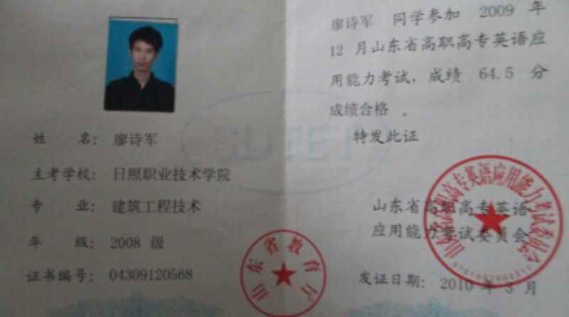 畢業學校: | 日照職業技術學院 | 所學專業: | 建筑施工技術 | |