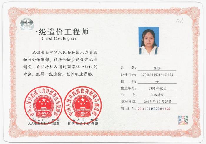 工作負責,能較好的團隊協作能力;能獨立編制工程量清單和標底,工程結算審核等。有豐富的工作經驗和較好的處理問題能力; 證書:助理工程師職稱、CAD中級、裝飾中級造價員、土建初級造價員,二級建造師(房建)、安全員b證、一級造價師(土建)等; |