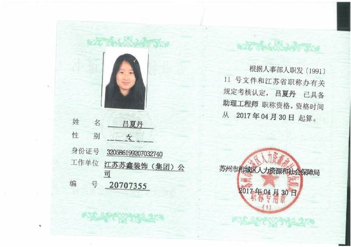 2012.7-至今 江蘇蘇鑫裝飾(集團)公司 門窗、幕墻預決算員 |