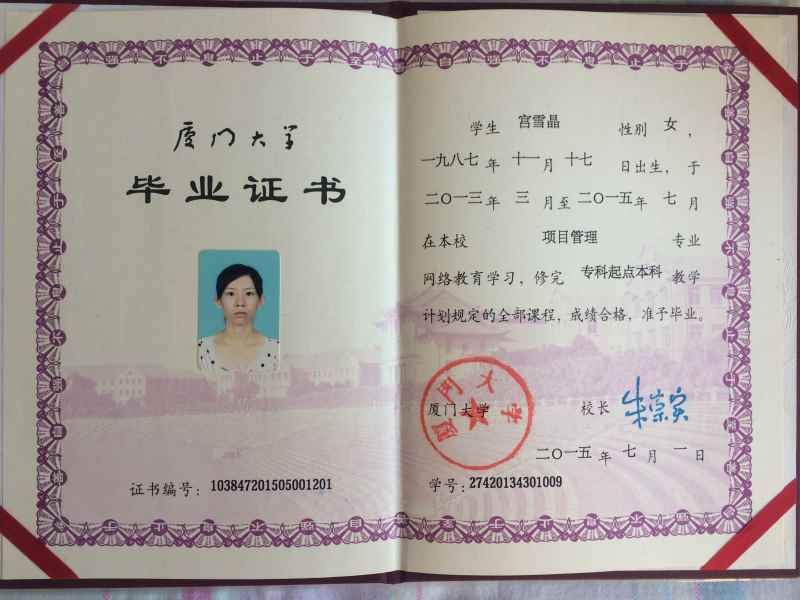 畢業學校: | 廈門大學(網絡教育) | 所學專業: | 項目管理專業 | |