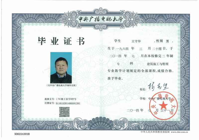 畢業學校: | 中央廣播電視大學 | 所學專業: | 工程管理 | |
