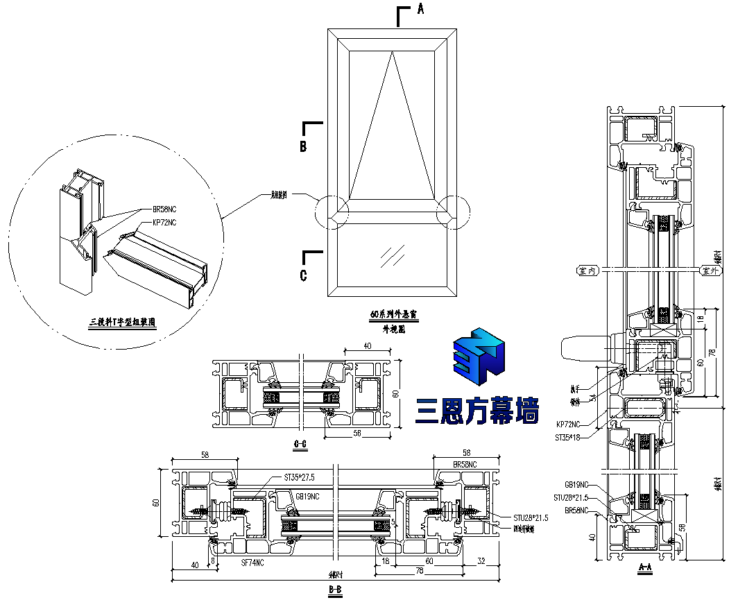 你的意思是整體框,框用內外開料焊接,中梃用Z型中梃