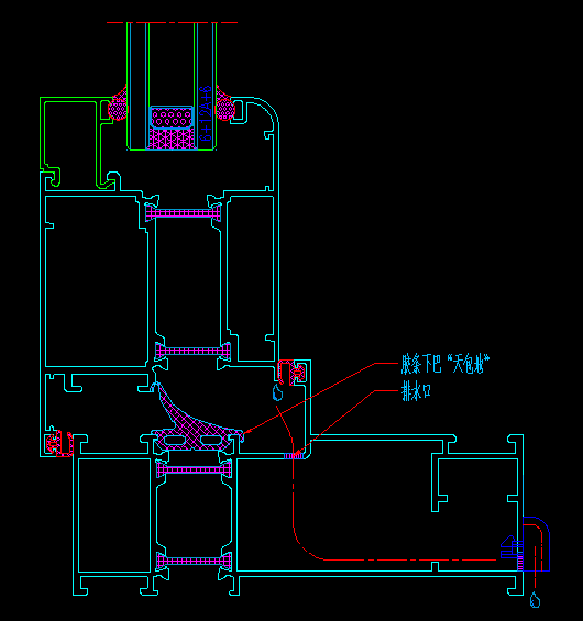 你的上圖肯定不行,扇外的檔翅兒形成冷橋了。下圖扇料截面不動,把框料截面得改動,在不改變框扇槽口的基礎上,加個水槽,即使水大,披到膠條上(膠條做個長下巴,防止水流到隔熱條上滲漏),也會導入水槽內,通過排水孔流入墻體導出