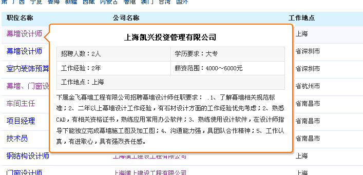 1、在“會員招聘”頁面,只要將鼠標放到職位名稱上,就會彈出該職位的簡略介紹,便于您提前預覽該職位的大致情況,對于感興趣的則可點擊打開該職位詳細介紹頁面,幫助您節省時間。
