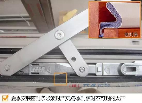 3)還有密封條也有好差之分,主要作用是通過壓條和內扇上都穿有密封膠條,讓玻璃和框扇更緊密,從而保證了門窗的氣密性,密封條不好會讓斷橋鋁窗漏水,密封條很重要!