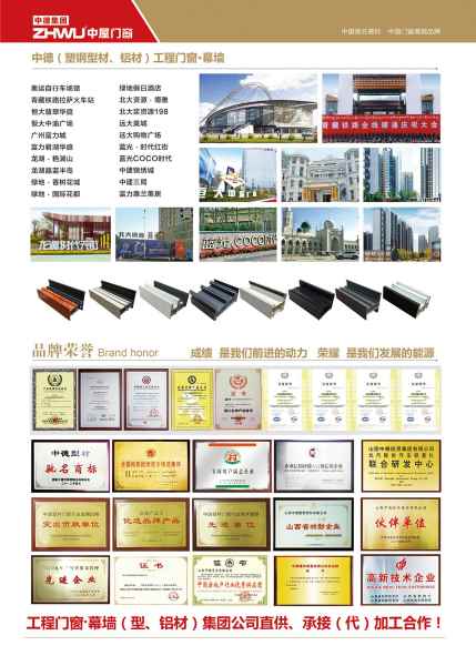——中屋門窗產業旗下公司:湖南中屋門窗產業集團有限公司、中屋門窗系統科技(蘇州)有限公司、湖南中屋元拓門窗幕墻有限公司,分別由浙江中屋造控股有限公司、中德投資集團(鋁材)有限公司、湖南元拓建材集團股份有限公司合作成立。專注于中國門窗產業發展,以《中屋造》高工藝、高品質、高服務進行產品研發與品牌運營。結合中德集團公司自主研發的鋁合金鋁材、高性能塑鋼型材、高端鋁木型材等10大系列200余種型材,實現《中屋系統門窗》品種最全,產品覆蓋所有建筑門窗用。 中德集團擁有型材、鋁材(門窗)、管材、汽車輕量化四大支柱產業,是一家集生產、科研、銷售為一體的現代化民族民營企業。下轄8家全資子公司,1000余家營銷分公司及經銷商遍布全國各地,國內同行業“五強”企業。與德國漢高公司、美國杜邦公司、英國開米森集團公司、瑞士汽巴公司進行技術合作,與世界500強北汽股份、恒大集團、富力地產強強聯手。依托各方產品開發和創新優勢,在新材料、新工藝等關鍵技術進行長久合作。 中屋高端家裝系統門窗產品有:以中德集團在全國各鋁、塑、鋁木型材生產基地產業鏈,以及1000多家銷售網點的服務,致力打造各大區域“中屋高端(系統)門窗生產基地”的建立,實施“以廠為倉”打造行業首創“O2O+C2F”商業運營模式。為客戶提供高品質系列產品:鋁合金系統節能門窗,鋁包木門窗,鋁/木重型(提升)推拉門、平開門,鋁/木系統陽光房等高端產品私家《定制服務》。 中屋建筑工程節能門窗產品服務:以各區域建立“門窗加工中心+倉儲中心+運營中心”為各地區房地產商、建筑商進行戰略合作服務。對各區域不同氣候的工裝門窗,結合自主研發的各種節能型材,以中屋門窗公司系統進行(代)加工合作服務。其中鋁合金型材、塑鋼型材進行集團直供,為各合作商提供不同建筑節能門窗的需求:鋁合金(斷橋)門窗、高性能(多腔隔熱)塑鋼門窗、鋁塑鋁(復合)節能門窗、鋁合金幕墻等系列產品。 浙江中屋控股有限公司 湖南中屋門窗產業集團有限公司 中屋門窗系統科技(蘇州)有限公司 |