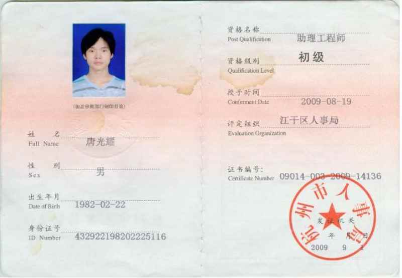 姓 名: | 唐光耀 | 性 別: | 男 | ![]() |