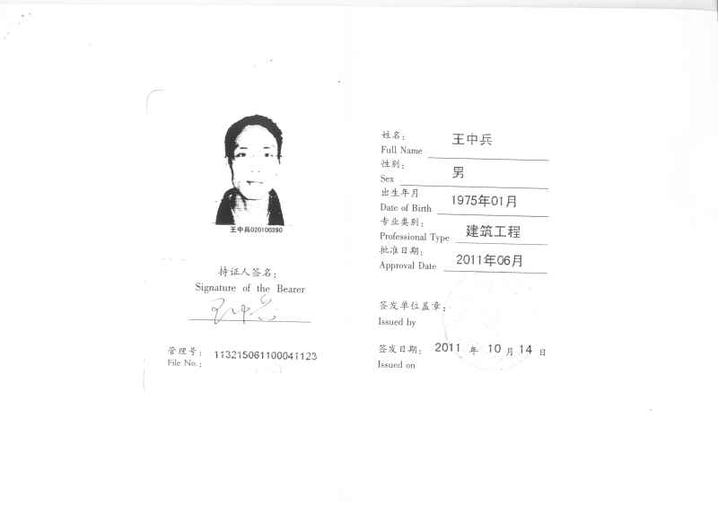姓名:王中兵 出生年月:1975年1月 身高:172cm 籍貫:四川省廣元市 目前工作地:重慶 婚姻狀態:已婚 學歷:(時間,學校,專業,) 2002年7月畢業于四川農業大學企業管理專業 證書/職稱:二級建造師(土建)、注冊安全工程師、施工員證 期望工作地點:成都、重慶及周邊 自我評價:工作積極主動,待人真誠,善于吃苦耐勞,具有較強的團隊合作意識;有能勝任幕墻工程管理所具備的專業知識,具有較強的危機管控能力及全局把控能力; |