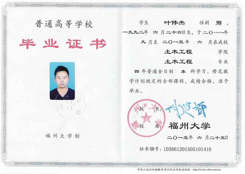 畢業學校: | 福州大學 | 所學專業: | 土木工程 | |