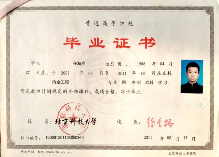畢業學校: | 北京科技大學 | 所學專業: | 冶金工程 | |