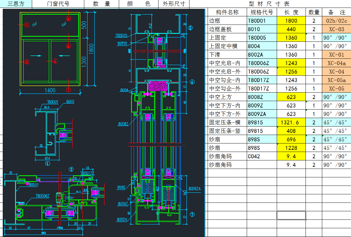 首先你得去了解下推拉窗的結構,之后看節點圖,了解你需要計算的型材是從哪里到哪里,之后看節點圖上需要減掉的尺寸,用從尺寸減去就能計算出來。
